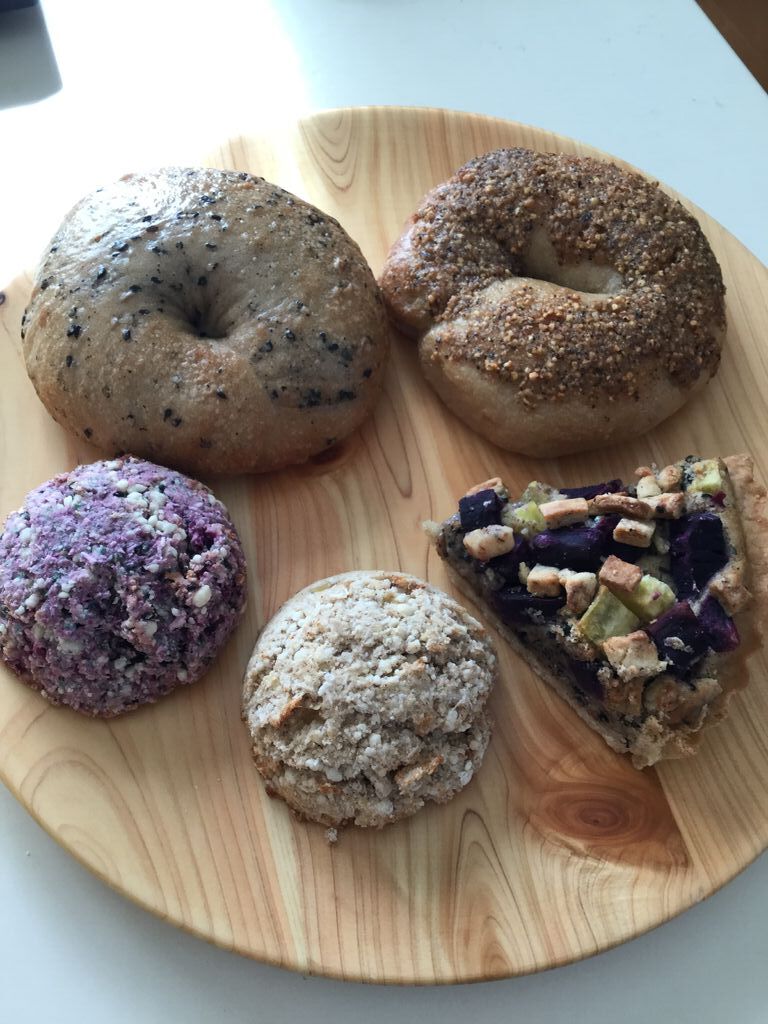 ひとりぼっちの月曜日、やらなきゃいけないことはたくさんあるけど、もやもや気分でやる気が出ないなぁ…と、栃ナビを見たら素敵なお店の情報が!さっそくお昼ごぱんを買いに伺いました。山道をドライブしてたどり着いた場所は、なんとも素敵な風景が広がっていました。並んだ商品の中から「大豆から育てたきな粉ベーグル250円」「さつまいもあんベーグル280円」「紫芋スコーン300円」「アップルシナモンスコーン300円」「さつまいものきなこクランブルタルト400円」を購入。帰宅後、さっそくきな粉ベーグルをいただきました。生地はもっちもちで小麦の味がしっかり感じられ、つぶつぶ粗めなきな粉がとっても香ばしくて最高に美味しかったです!食後にタルトもいただきましたが、とにかくさつまいもの甘さにびっくり!優しいお味が作り手の優しさまで伝えてくれます。ドリンクやスープもあったので、次回は縁側でゆっくりいただきたいです。美味しい幸せをありがとうございました!ごちそうさまでした〜。 (訪問:2020/10/26)
