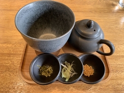 始めての訪問、他の方のレビュー読むと予約無しでは無理かなと思いましたが平日の13時30頃でお客さんも少なく大丈夫でした。お洒落な門構えに期待増し、ランチも美味しそうなものばかりで選んだのはローストビーフ丼、2400円とやや高め。左下写真はお茶漬けも可能と言うから残り1/4くらいをお茶漬けにしたがこれまたよかったです。ローストビーフ丼頼んだら、必ずお茶漬けも食べて下さい。無料です。 (訪問:2025/04/18)