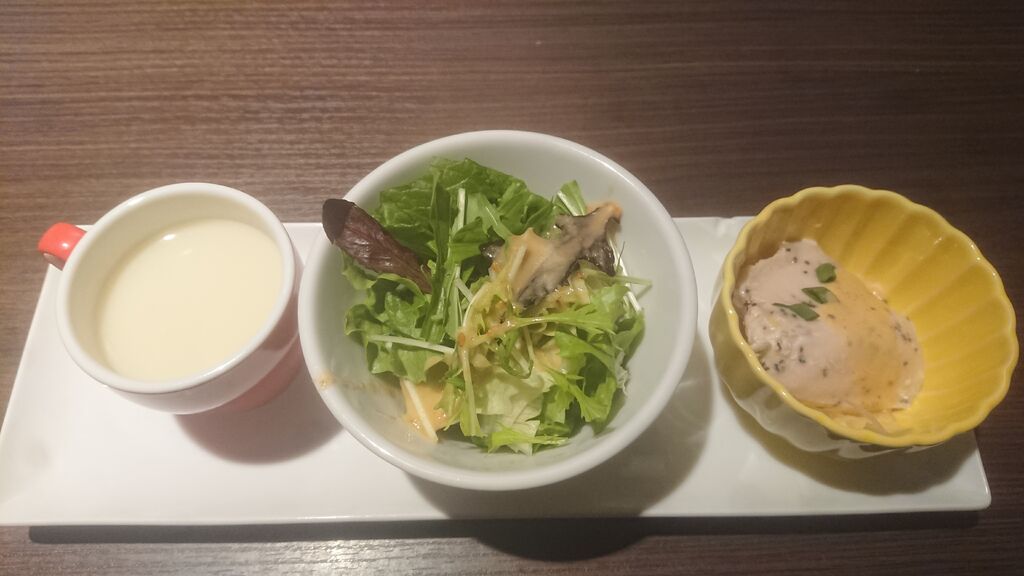 ランチに初来店です(^∇^)ノ♪店内は広々としていて半個室的な感じで周りを気にせずゆ〜ったり寛げましたぁ( ꈍᴗꈍ)♪土日もランチセットがありパスタやピザ、ごはん、お肉系までバラエティです。いろいろ迷いましたが赤身肉ガッツリの「料理長おすすめステーキセット」に決定〜☆ソースは人気の「にんにく醤油」で美味しくいただきましたぁ(^人^)お料理のセットには前菜、スープ、サラダがプレートで付いてプラス料金でデザートやフレンチトーストを付けることもできます♪今回はデザート付でデザートも3種類から選べてティラミスに♪飴細工も美しい〜☆お味も甘ったるい感じではなくし〜っかりティラミス!コレだけでもいただきたいっ(≧▽≦)!コスパも良くおなかい〜っぱい♪気になるメニューがまだまだあるのでまたぜひリピしたいです( ꈍᴗꈍ)♪そうそう配膳ロボットさんも活躍していましたよ。 (訪問:2024/09/18)