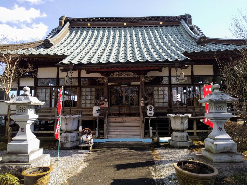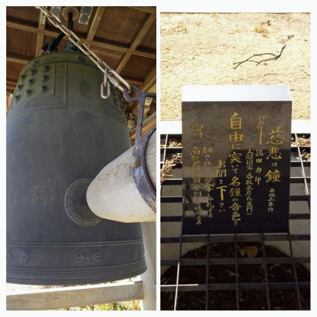 住職が境内で作業をされていたのでお願いし本堂にある板碑(上三川町文化財)を見せて頂きました。本堂正面に金色の仁王像が守備していて睨みをきかせておりました。板碑は全高178cm厚さ4cmと県内最大の大きさで文字もハッキリとしており、お見事の一言しか出ませんでした。境内には数多くの古木が見られます。その中でも推定樹齢480年のコノテガシワ(上三川町名木古木)は一番に目が留まる存在であります。住職が小さい頃と幹の太さは変わらないそうでスリムな印象を受け樹皮が剥げている箇所も見当たらず若々しい木だなあと思いました。境内入口には推定樹齢280年のエノキ(上三川町名木古木)が太い幹を二手に分けて堂々と構えておりました。山門前にも巨木のクスノキと近々道路になってしまい切り倒される運命にあるムクロジ共に100年はゆうに超えている古木であります。長野県産のソノサトリョクリュウという桜の木が植栽されており緑色の花が咲くそうです。初めて聞き初めて見る桜でギョイコウ桜と比べても緑色に特化しているそうで咲く時期に是非伺おうと思いました。境内の慈悲の鐘は人間国宝 香取正彦氏の弟子である鴇田力さんの力作であります。鐘には大日如来様と薬師如来様が彫られており、この組み合わせも初めて目にしました。コレダケの素晴らしい鐘を自由に突いていいそうなので御厚意に甘えて突かせて頂きました。軽く突いただけですが余韻が周辺に長く広がり心が洗われた気分となりました。ビジュアル面が充実したお寺です。 (訪問:2021/02/02)