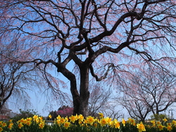 今年も美しいこちらのしだれ桜…満開までもう少しというところでしょうか。しだれる枝につく可愛らしい花々…癒されます。もう少し暖かくなると、桜の下に咲く水仙等の春の花々の競演も見られます。もう少ししたらまた伺おうかな~♪ (訪問:2025/03/30)