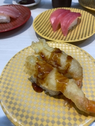 とても人気のあるお店なので、夜は早めに行くようにしています。お楽しみは期間限定のフェアメニュー。この日は大分のとり天が気に入りました。毎回注文するのは、オニオンスライスがたっぷり乗ったサーモンや海老。回転寿司は食べすぎちゃうので、少しでもヘルシーに…。キャビアも美味しかったなぁ。オススメです! (訪問:2024/05/18)