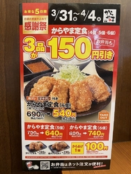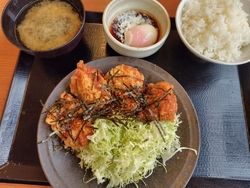 からやま感謝祭、150円引き。からやま定食を注文しました。4分程で運ばれてきました。からあげは大きくて食べ応えがあり、とろろのお味噌汁と塩辛も美味しいです。 (訪問:2025/07/27)