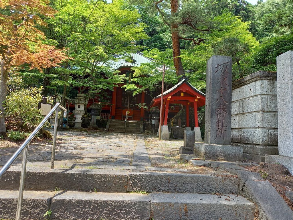 天台宗のお寺で下野三十三観音霊場第一番札所です。御本尊様の千手観音菩薩像は、中禅寺の立木観音像と同じ桂の木で作られたお前立観音像だそうです。境内はあまり広くありませんが、赤い鐘楼や石像、地蔵様、水かけ観音様などいろいろ拝見させていただきました。こちらも緑が多くて紅葉の時期も綺麗でしょうね。 (訪問:2021/06/11)