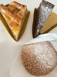 たまたま宇都宮へ行った夫がお土産にと買ってきてくれました。アップルパイ(600円)、ガトーショコラ(600円)、シュークリーム(400円)。ガトーショコラは半分こにしたので、写真が半分になってます…。チョコが濃厚〜!アップルパイは林檎が大きくて食べ応え抜群、シナモン無しで甘くて美味しい林檎♪パイ生地はしっとりサクサクで美味しい!シュークリームは端から端までクリームたっぷり、生地もサクサク甘くて美味しい!今まで食べた中で一番好みのシュークリームでした。少し値段が高いかな、と思ったけど一つ一つが大きいので大満足!リピ確定です、ご馳走様でした♪ (訪問:2024/01/26)