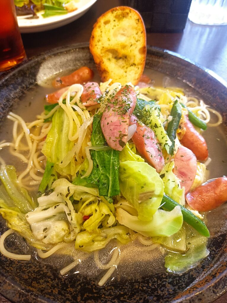 NEW前の日に予約して訪問しました!ランチメニューのパスタを注文。ソーセージとキャベツとバジルのパスタを選び、サラダとドリンク、ガーリックトーストが付いてきました。パスタは塩味でバジルも優しい味で美味しかったです!食事が終わってからデザートも食べたくなり、ランチのデザート付きにしてもらいました! (訪問:2025/12/06)