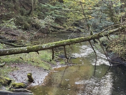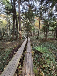 この日は、生まれて初めて小滝を観賞にいきました。湯滝に比べると可愛らしい小さな滝です。湯滝から、森の中の木道の遊歩道を歩きます。途中で熊避けの鐘を、鳴らしました。湯滝の川の水質はとても綺麗でした。 (訪問:2025/10/18)