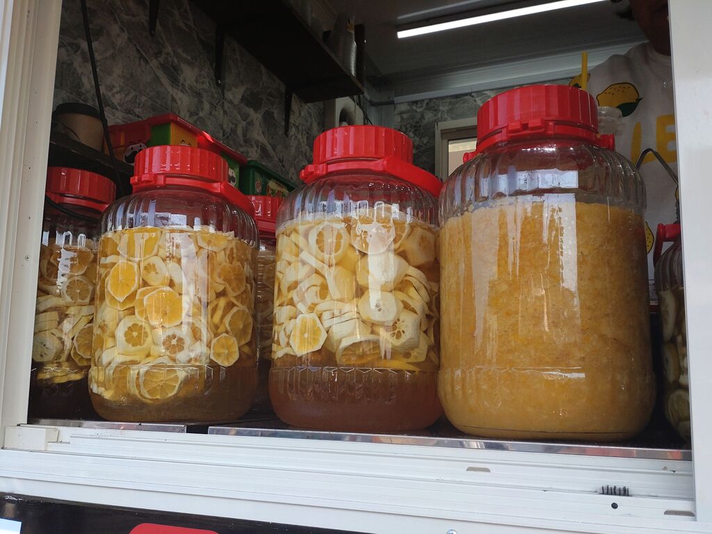 ろまんちっく村でのイベントに出店されてました。私が選んだのはレモンと柚のレモネード。果肉が下にたくさん沈んでます。ストローでグルグルかき回して飲むと口の中に入ってきます。炭酸ソーダにすることもできます。のどが潤い爽やかな味です。 (訪問:2024/02/18)