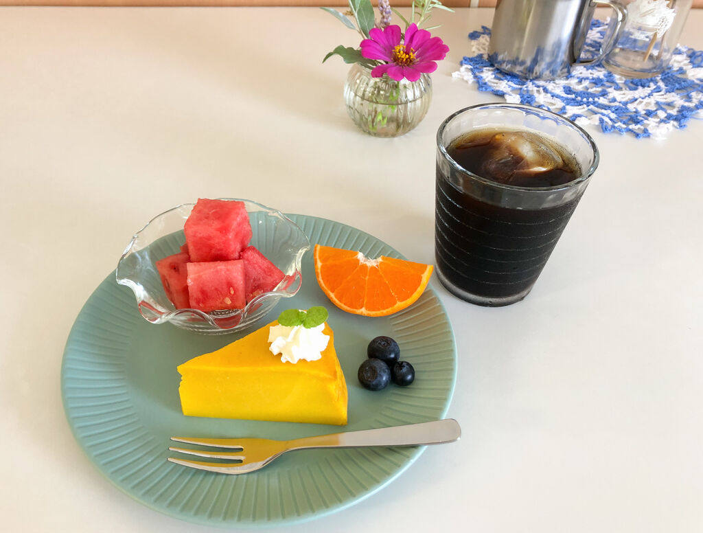 色々、メニューが替わるので今回はどんなのかなと楽しみにランチ訪問しました。今回のcafeランチ(¥550税込)は、ペスカトーレorすりおろしりんごカレー(栗入り炊込みご飯)・ごぼう薬味サラダ・かぼちゃコロッケ・人参ラテ・卵焼き・芋の和物・豆腐の味噌和え・茗荷の酢の物・柿・スープ・黄桃が載ったババロア・アイスコーヒーのセットでした。最初の前菜でワクワクして、ひとつひとつ味わいながら頂きました。どれも丁寧に作られて、素材の良さを引き出した美味しさでした。ペスカトーレも優しい味でパスタとソースの絡みが良く、ババロアも黄桃とクリームで楽しめました。今回も満足なランチでしたが、9/30(金)でしばらくの間お休みと知り、残念でショックです。これ程のメニューで、コスパが良いのに…(ToT)早い再開を楽しみしています。 (訪問:2022/09/28)