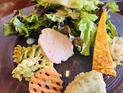 こちらの日光里さんには初めて伺いました。熱々のスープ、もちもちのパン2種、そして豪華な前菜!もりっとしたサラダにマリネやお肉などが一皿に。選べるメインはベーコンと白菜のペペロンチーノにしました。そしてこちらのお店のお楽しみは何と言っても選べるデザート!たくさんあるデザートを目の前で一つ一つ説明して下さり、その中から好きなものを選ぶことができます。アイスまで添えられ、ドリンクまで付いて税込1500円はとってもお得なランチでした! (訪問:2024/11/30)