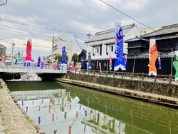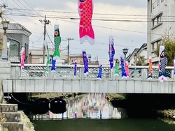 NEW栃木市の街に来たので、巴波川に桜が咲いていないかと歩いて行くと、桜は終わったようですが、鯉のぼりが既に飾られていました。とても楽しい光景を今年も見ることができて、嬉しかったです。 (訪問:2026/04/05)