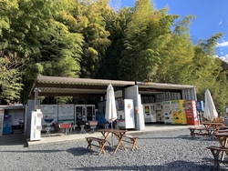 久々の訪問です。うどんかそばの自販機が新入社員時代に良く利用したので懐かしく、これを目当てに行きました。残念ながら、お店の方が麺を補充作業中。仕方なく、カルメ焼きと冷凍おにぎりの昼ご飯。これも昭和レトロ感が感じます。周りの桜や竹林もほのぼのとしていて、レトロ感を増してますね。寛げます。昭和の人だけかな^_^、 (訪問:2025/03/26)