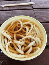 うどん・そば、トーストサンドなどのレトロ自販機が並んでいて、その中から「たぬきそば(350円)」を選んでみました。数十秒待って取り出すと、出てきたものは“具なしそば?”かと思いきや、かき混ぜると下から揚げ玉・わかめ・ナルト・麩・刻みネギなどが浮かんできました。寒空のもと、のどかな田園地帯の中でいただいた“自販機そば”は、なぜか、人間味のある温かさを感じました。 (訪問:2024/12/24)