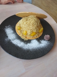 隈研吾さんが設計された建物のようで、とてもおしゃれです。店内は広くて開放感があり居心地が良かったです。スイーツカンパーニュ800円を注文。ケーキは季節のあんタルトキャラメルバナナ、ドリンクは和紅茶にしました。あんこは、和菓子のイメージですが、ケーキにしても美味しいんですね♡和紅茶は、重厚感のある可愛い急須にたっぷり入ってきて、あんタルトと抜群に合いました。以前伺った際に頂いた、あんガレット(あんクリーム&ピスタチオ) 1200円も美味しかったのでおすすめです。こちらは中のあんこを自分で選べるので、自分好みのものが作れて嬉しいです♡ (訪問:2025/07/22)