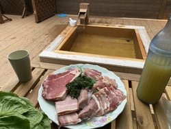 矢板温泉まことの湯で、工事が続いていたグランピング場がオープンしました。ドーム型テントですが、すべてエリア内に専用露天風呂がついていて、普通のグランピング場よりも見えないようなセパレートがしっかりとしています。夕食は、栃木産の食材が盛り込まれたBBQ、朝はホットサンドです。なんといっても、専用のエリア内の露天風呂が秀逸です。日が暮れると、森の木々がライトアップされ、静けさの中で水音を聞きながら過ごす夜は、初めての体験でした。もちろん入浴すると、開放感バツグンの爽快感。夏だったので、火が出ている間は少し暑かったですが、ドームテントにはエアコンもありますし、日が落ちると外もさわやかでした。 (訪問:2023/08/10)