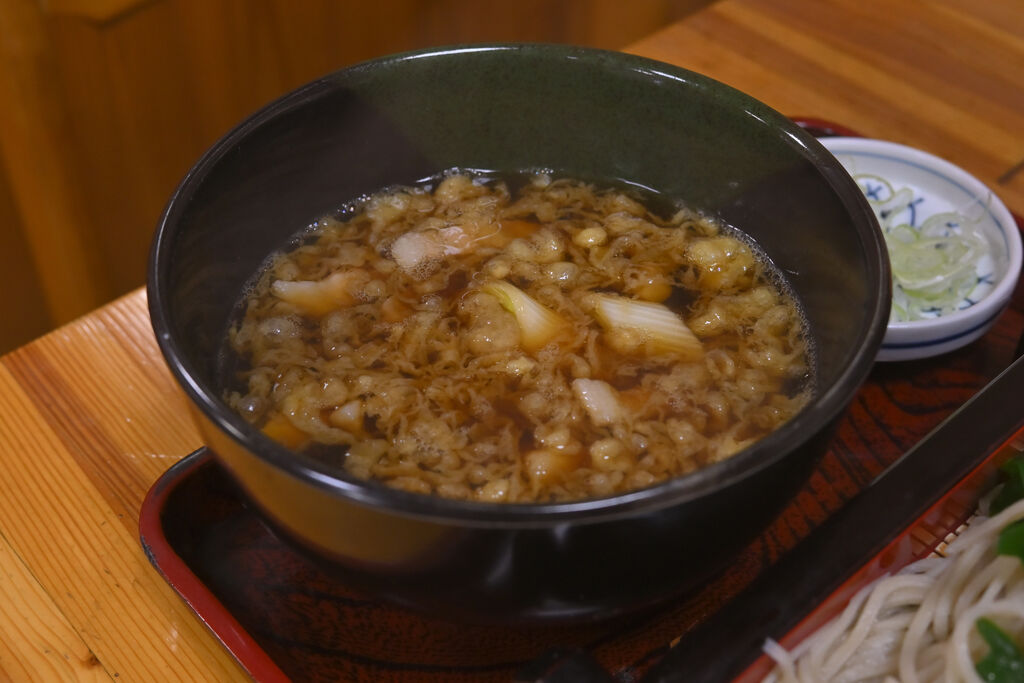 東武日光線『新鹿沼駅』から車で4〜5分ほどの所に構える蕎麦処です。昔ながらの日本家屋を改装したような店内は、ゆったりとしたレイアウト。テーブル席に加えて小上がりもあり、まったりと寛ぎながら蕎麦を啜れるスポットに思いました。BGMがまさかの懐メロJ-POPなのも、さり気なく胸の奥のノスタルジーをくすぐってきます(笑)さて、オーダーしたのは【ニラ肉汁そば(税込900円)】。こちらのおすすめメニュー【肉汁そば】に、鹿沼名物ニラがトッピングされた一品です。ちなみに、お蕎麦は「湯津上産玄そば 栃木氷温寒熟蕎麦」とありました。このお蕎麦が秀逸!白っぽく細身なアウトラインながら、コシや旨味は豊かに。凛としながらも、どこかふくよかさみたいなものも感じられ、なおかつ喉越しは良好。また、つけ汁は醤油やお出汁の旨味が効いて濃いめに。豚バラ肉やネギ、揚げ玉などの具材が泳いでいます。そこに潜らせたお蕎麦は茶色に色付き、ニラもより馴染むようになりますね。お蕎麦の凛とした表情は損なわれず、素直に「おいしい!」と。ボリュームもあり、このクオリティで1,000円でお釣りがくるとは、まっことありがたいばかりです(感謝)。 (訪問:2024/06/18)