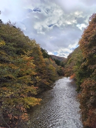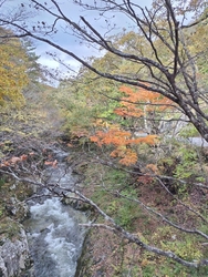 昼食後にせっかく三依地区まで来たので、禁漁期間ではありますがいつも渓流釣りをする場所へ、紅葉ドライブしました。これからピークを迎えるかな?って感じでしたが、見ごたえ充分の紅葉が楽しめました。 (訪問:2025/11/01)