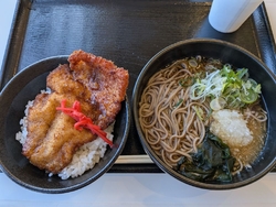ミニわらじカツ丼・小蕎麦のセットをいただきました。お蕎麦は”冷”と”温”が選べますが、気温的に”温”に致しました。ミニとミニのセット、と言うことになっていますが、ボリュームのあるセットです。お蕎麦は香りも良いし、風味もばっちり。食感も良ければのど越しもいい。小盛ではあるけど、ボリュームあります。わらじカツ丼も小盛ですが、ミニではないボリューム。カツもおいしいし、ごはんも美味しい。この味とボリュームで、このお値段は超ありがたいです。外は激寒ですが、心と体はぽっかぽかになりました。 (訪問:2025/12/12)