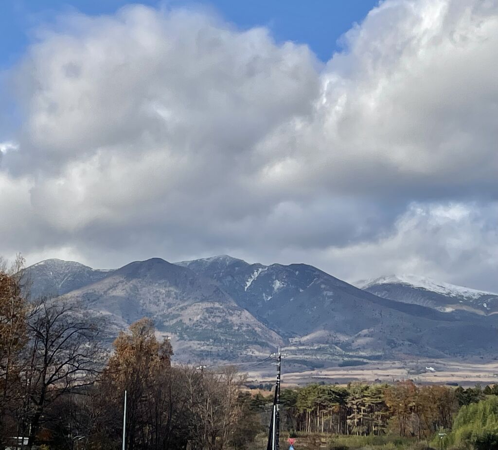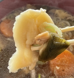 NEW久々の訪問です。レストランのなすとらんで昼ご飯。寒いので温まりそうな、な・すいとんを注文。具沢山の野菜にもっちりとしたすいとん。野菜の優しい旨みが、温かさを増しますね。雑穀のおにぎりや牛肉の小鉢もgood。テラスからは冠雪した茶臼岳が綺麗です^_^ (訪問:2025/11/19)