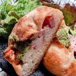 NEWJR駅近くに1月23日GRAND OPENしたザ ノット 宇都宮(ホテル)の1階に美味しそうなパネッテリアが出来たと聞き伺いました(^o^)/。。。お店のなまえは『LAZULI BAKERY』!ホテルと同じ黒基調のシックな雰囲気が素敵です(*^^*)。。。店頭にはズラリと美味しそうなパンが並びますが、多くのドーナツも並んでいるのでドーナッツも売りのようです(^o^)v。。。今日は美味しそうなパンの中から【グリーンカレーパン¥320】【パン・オ・ブルゴーニュ¥400】【カスタードマスカルポーネ¥300】【ソーセージデニッシュ¥400】【ヨモギあんこ¥320】をチョイス!美味しそうだったのでツイツイ何時もより多く購入していました(^-^)ゝ。。。「グリーンカレーパン」は、フカフカだけど確りした食感が有る美味しい生地の中に生姜が効いた旨味タップリのグリーンカレー!旨々のお勧めです。普通のカレーパンと並んでいるのでご注意下さい。購入時はトップの青海苔?が目印です「パン・オ・ブルゴーニュ」は、確りとした食感と味わいのある生地の中にゴロゴロッとベーコンの角切りが!上に乗るエスカルゴバターがアクセントで味わいと食感を楽しめます「カスタードマスカルポーネ」は、フワッフワッ生地の中にタップリの旨々マスカルポーネ!満足感がある甘味を感じる小さな巨人です「ソーセージデニッシュ」は、サックリしたデニッシュ生地でプチっとジューシーな味わいのあるソーセージが巻かれています。ソーセージと共に巻かれた粒マスタードが酸味・辛味で味に変化を与えてきます「ヨモギあんこ」のビジュアルは一見してまるで草餅!確り食感のヨモギ色生地の中に美味しい甘さ控えめのアンコが入る衝撃の逸品です(*´ω`*)。。。今回購入したパンはどれも確り食感で丁寧に作られた味わい深い生地をベース作られていて、どれを食べてみとても美味しかったです♪ヽ(´▽`)/。。。次回はどのパンを購入しようかなァ。ドーナッツも食べてみたいですねェ(*´∀`)♪。。。ザ ノット 宇都宮1階にOpenした『LAZULI BAKERY』さん!美味しいパンが揃うお勧めのパネッテリアです( ^-^)ノ∠※。.:*:・'°☆ (訪問:2026/01/28)