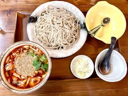 行列覚悟で久々にお邪魔しました。お店に着いた時は10組以上のお客さまが待っていました。定番のお蕎麦も良いのですが、オリジナルのお蕎麦にしました。今回はピリ辛汁そばを頂きました。つけ汁はキノコ類、肉そぼろ、ネギと具沢山で程よい辛味がクセになると思います。 (訪問:2025/04/30)