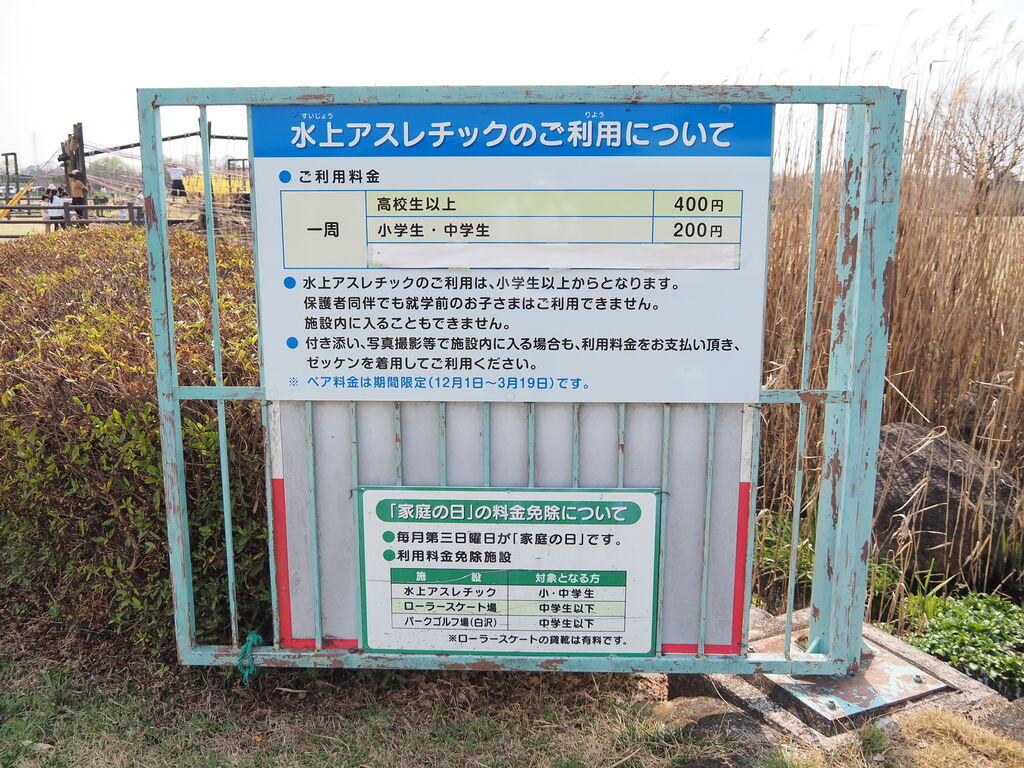 夫と子どもが水上アスレチックにチャレンジしました。小学生以上が利用できます。私は撮影係で同行(付き添いも有料です)。荷物置きあり、貴重品はコインロッカーに預けられるので安心です。アスレチックは難易度が高くハラハラ・ドキドキ。最初は水にぬれたり、落ちたりすること怖がっていましたが、最後は自ら水の中に足を突っ込んで楽しむ余裕もありました(笑) 1日で運動能力がUPしたと思います。また、着替え・靴下・靴・タオル類持参がおすすめです。ウォーターシューズやラップタオル(着替え用)もあるとさらに良いかも。パーク内を歩くだけでも良い運動になります。また、アスレチックエリアの奥の方に桜の木があり、花が咲き始めていました。 (訪問:2026/03/29)
