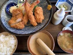 和食レストランとの事ですが、とんかつ屋で刺身や和食全般提供する感じ。とんかつが流石に旨いです。揚げ具合が絶妙で衣が薄くてさっぱりしながらも、サクサク感も残してます。〆はさっぱり系とんかつラーメン。太麺でもちもちした旨いラーメンです^_^ (訪問:2023/12/05)
