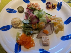 予約してランチに伺いました。開店と同時に満席になっていました。人気店ですね。いただいたのは、前菜サラダ、メイン料理、スープ、ピザ、ドリンク、デザート付きのBセットです。8種の前菜はどれも美味しく楽しめました。メインのオムライスは、ツナのトマトクリームをいただいたのですが、優しいお味で美味しかったです。メインの種類はオムライスの他にパスタや洋食メニューがありました。デザートの種類もガトーショコラ、モンブラン、タルトなどありました。メインやデザートやドリンクなど選べるので、色々と楽しめると思いました。 (訪問:2023/12/10)