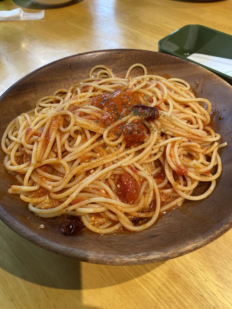 WILD-1で買い物したあと敷地内にあるこちらで夕飯です。ペスカトーレ、アラビアータ、ナポリタンをいただきました。普通だったらコーンスープをチョイスする所かもしれませんが、豚汁に心惹かれ注文しました。野菜がたっぷり採れて、エアコンで冷えた体が中から温まりました。私がいただいたアラビアータはニンニクが効いていてピリ辛で元気になる味。全部トマトソースだけど全く違う味でそれぞれ美味しかったです。パスタは大盛り無料で、たくさん食べる方に嬉しいサービスだなと思いました。 (訪問:2025/08/02)