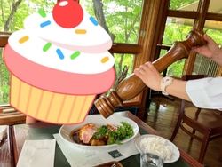 念のため到着時間の2時間前に予約をしてから伺いました。かなり前から気になっていたレストラン♪森林の中に佇むステキなロケーション⤴︎⤴︎そして、テーブル席からは、霧降の滝が遠目に見えます♪ハンバーグに好みでブラックペッパーをかけてくれるのですが、この大きさに思わず写真を撮らせて頂きました。一皿の量が多めなので、かなりお腹が満たされました(^^) (訪問:2022/05/30)