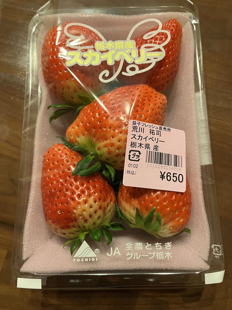 とちおとめ、とちあいか、スカイベリーと主力の栃木苺が沢山ありました。粒がツヤツヤで真っ赤!スーパーとは比べ物になりません!スカイベリー1パック¥650を購入。お家で美味しく甘いスカイベリー食べました。 (訪問:2023/02/05)