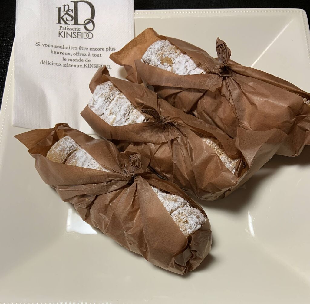 家族のお祝いに美味しいケーキを、とKINSEIDOさんへ。祝日ということもあり、多くの方が訪れてました。お店の入口のお祝いボードにも沢山のお名前が。みなさんおめでとうございます!いちごショート、モンブラン、いちごムース、エクレアを買いました。私はエクレア。大きいバージョンもコスパが良いですが、一人用も大きいし、カスタードや生クリーム、チョコクリーム、バナナにイチゴと楽しみが次々とあってやっぱりこれが一押し!と思いました。 (訪問:2021/11/03)