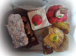 キャラメルリンゴ、栗の木、ショコラピスターチ、カシスムースを購入しました。コルネはすでに売り切れてしまっていました。残念!購入したケーキは、とてもふんわりしていて、滑らか、甘さも甘すぎずとても美味しかったです。 (訪問:2022/11/12)