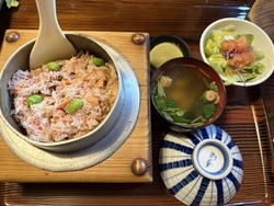 前回、日曜日の開店直後に行った時は満席で諦めました。今回は13時過ぎに行ったのですぐに着席できました。お店のHPの値段より少し高くなっていました。「まいたけバター釜めし」を注文。約20分程で運ばれてきました。釜めしの栗が甘く、サラダ、味噌汁、釜めしとどれも美味しかったです。 (訪問:2023/10/08)