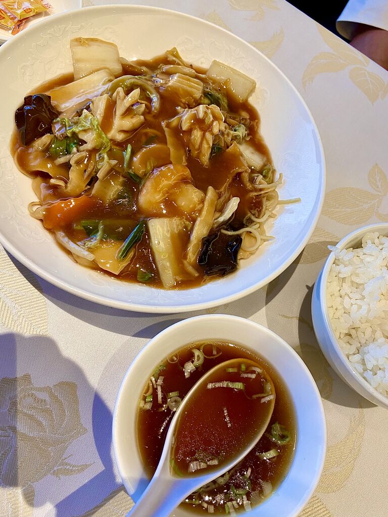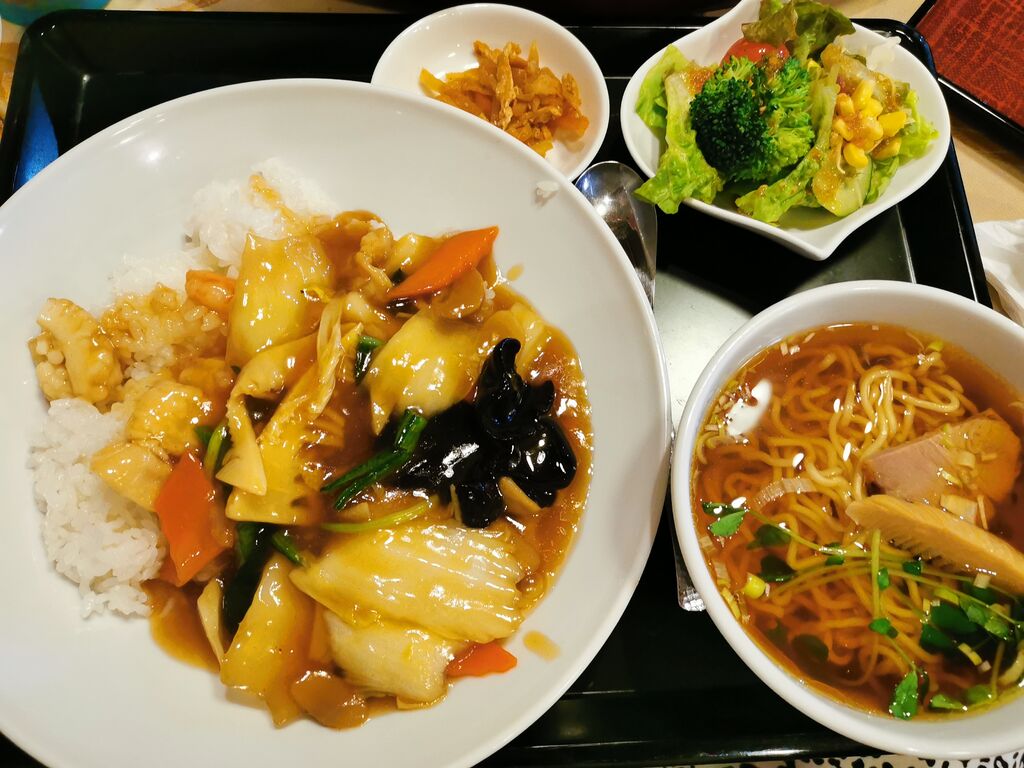 以前の口コミを書いていたら凄く食べたくなってしまい…ランチに行ってきました。11時半オープンで11時40分位に伺いました。メニューは日替わりも美味しそうだったのですが、中華丼セットと決めていたので迷わず注文。そんなに待つこと無く運ばれてきました。安定の美味しさと具沢山な野菜の餡(^^)食べたいものを食べたい時に食べると何倍も美味しい!幸せでした。ごちそうさまです。 (訪問:2022/05/27)
