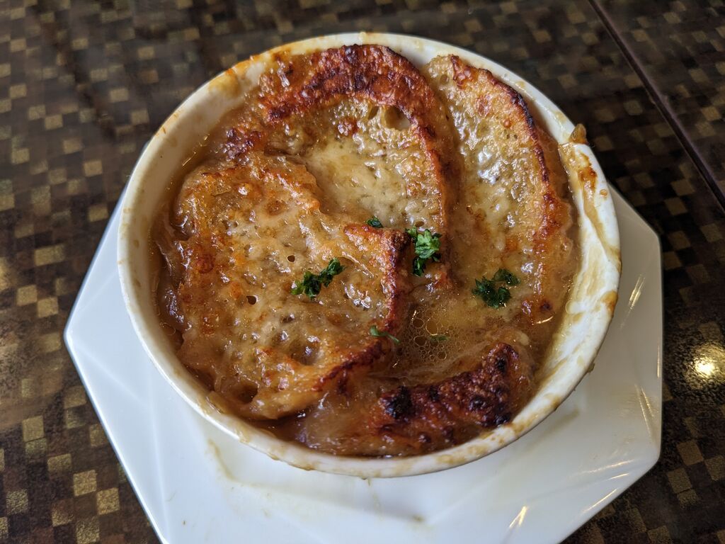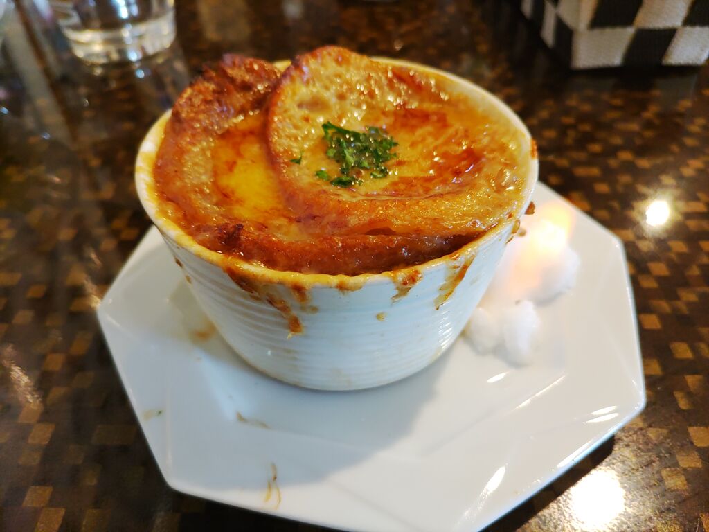 オニオングラタンスープと、花咲オムライスダブルソースをいただきました。先にいただいたオニオングラタンスープ。まず、提供方法にびっくり。ココット皿の横で小さな炎が燃えてます!その炎が、トーストとチーズがより一層で熱々でおいしくしてくれてるみたいです。こんなにもおいしいオニオングラタンスープ、いただくのは生れて初めて。最後のひとくちにまで玉ねぎの旨味と甘みがぎゅっと込められていて、ここまでおいしいスープには、もしかしたら二度と巡り合えないかも、と、思えるくらいにおいしいスープです。そしてそして、花咲オムライス。トマトソースもデミグラスソースも、見た目はさらっとしているのに、いただいてみると、とても濃厚ですっごくおいしいです。中のピラフもすこぶるおいしい。とろとろ卵も激旨。家からちょっと遠いし、駐車場もちょっと迷ったし、歯医者さんの予約の時間もギリだったけど、行って良かったです。感動的なスープとオムライス、心からブラボーです。 (訪問:2022/12/16)
