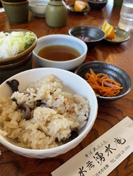 三連休の中日。11時半に到着しましたが数台分の駐車場が空いていて、40分ほどで入店できました。今回も『湧くわくセット』にクーポンでかき揚げをいただきました。セットのごはんは、秋ならではの「きのこごはん」でした。激うますぎて、おかわりしたいくらいでした。クーポンでいただけるかき揚げは、天つゆと塩でいただきました。 (訪問:2024/10/13)
