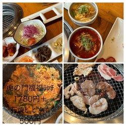 ランチの種類が多く迷いましたが福々ランチに。夫はライスを石焼ビビンバに+500円で変更。サラダ、牛タン、カルビ、鶏もも、キムチ、デザート、ドリンク付きで1780円とお得なセットでした。グループのとんかつのかつ盛は水曜が休みですが虎の門は営業していたので夫が平日休みの時にまた来たいお店になりました。 (訪問:2026/04/15)