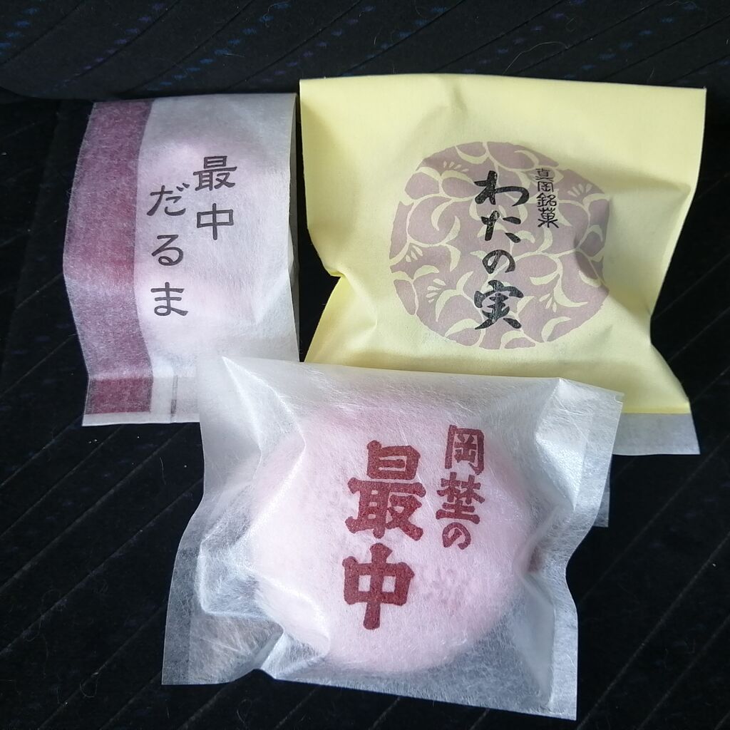 最中だるまと岡埜の最中(柚子)、あんずの入った洋菓子のようなわたの実を購入してきました。甘すぎず美味しい最中、あんずが爽やかでパイのようなわたの実も美味しかったです! (訪問:2022/05/28)