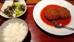 ランチタイムに伺いました。日替わりランチセットはご飯、ミニそば、サラダが付いて1100円です。メインはデミグラスハンバーグ、豚生姜焼き、にしんのソテー、チキンタツタなど9種類、そのうちコルドンブルーとメンチカツは売り切れでした。どれもおいしそうで悩みましたがのデミグラスハンバーグを頂きました。肉汁あふれるハンバーグ、生クリームでソースがまろやかにご飯が進みました。お蕎麦はミニといっても結構な量でたくさん食べる方でも満足すると思います。 (訪問:2022/08/20)