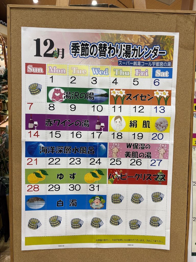 久しぶりに行って来ました。お正月と言う事で、回数券もいつもより安く販売していたり、岩盤浴も特別価格で利用できる様でした。夕方前に行きましたが駐車場もいっぱいで賑わっていました。宇都宮の湯は、入りやすい温度のお湯なので長湯しても負担になりにくいと思います。 (訪問:2024/01/03)