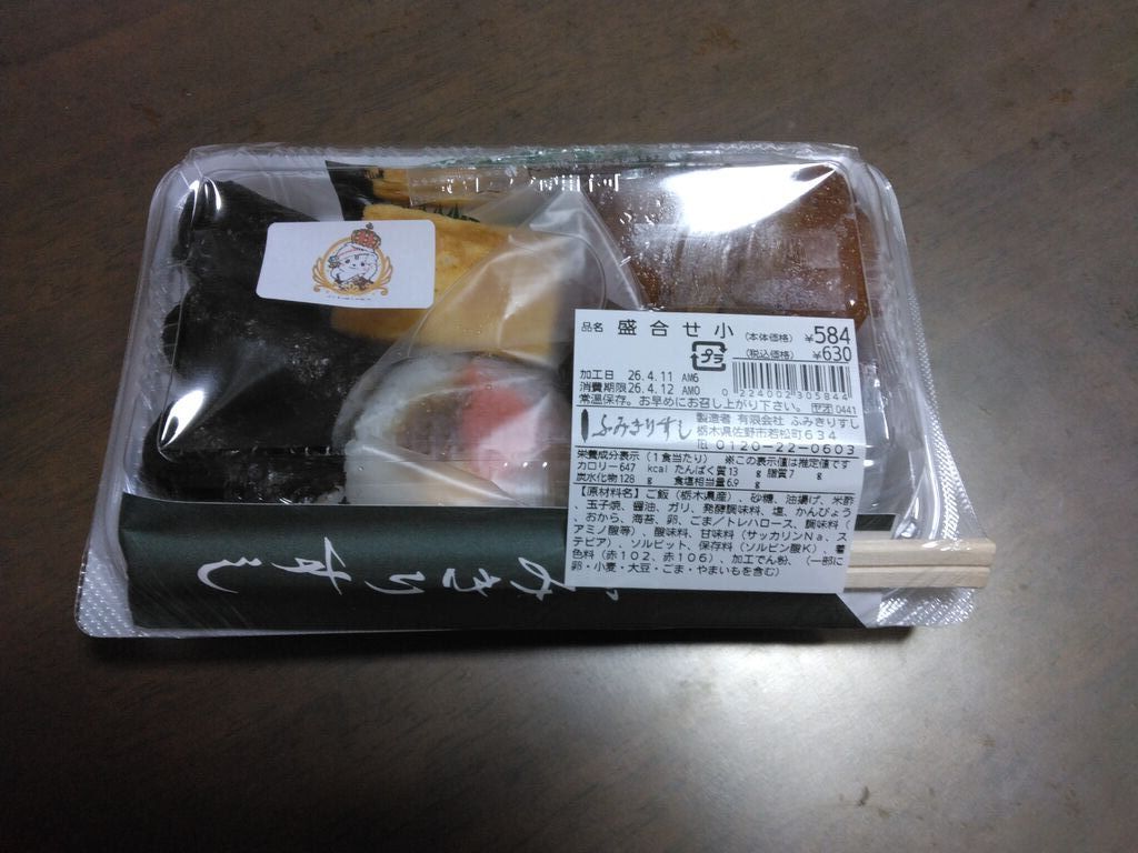 ヤオハン岩舟店にて、ふみきり寿司の「盛合せ 小」を発見(@ ̄□ ̄@;)!!! 押玉子のゴハンの面には白ゴマがびっしりついていて、初めて見たのでビックリщ(ʘ╻ʘ)щ お稲荷さんも、かんぴょうで結ばれていて、懐かしい感じですね(●ˇ∀ˇ●) そして、かんぴょう巻も、しっかりとした、かんぴょうの噛み応えが嬉しいデス(⋈◍>◡<◍)。✧♡ 太巻のでんぶも程良い甘さでGOOD(o゜▽゜)o☆ (訪問:2026/04/11)