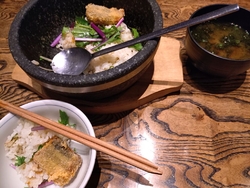夏のメニューになってから初めて伺いました!メインを選び、前菜とスイーツはブッフェ形式で、選ぶ飲み物付きです!メインを鮎肝焼きと枝豆の石焼ご飯にしました!飲み物はコーヒーに!メインには味噌汁が付いてます!前菜は季節の材料を使われた、美味しい品々!旬なお野菜のお料理が堪能出来ます!メインの石焼ご飯は、鮎が香ばしく焼かれ、とても美味しかったです!デザートは清涼感あるグラスに入ったゼリー、抹茶ティラミス、プリン等、和の素材を使われた、美味しいスイーツばかりです!お店の方々の素早い対応は、お食事を快く頂く事が出来て、ありがたいです!趣のある蔵を改装した店内は、とても落ち着いてお食事する事が出来ます!いつも美味しいお料理、御対応ありがとうございます!ごちそうさまでした!季節ごとのお料理がとても楽しみな、素敵な石の蔵さんです! (訪問:2025/07/22)