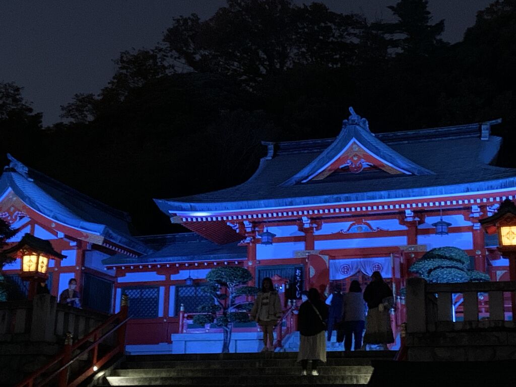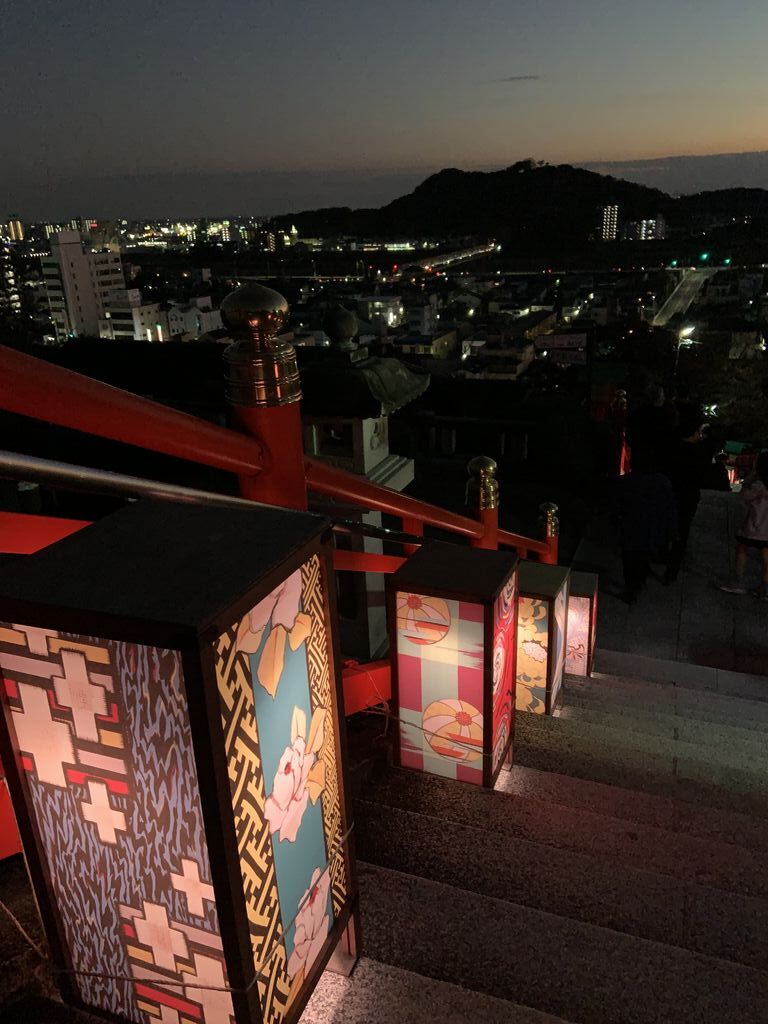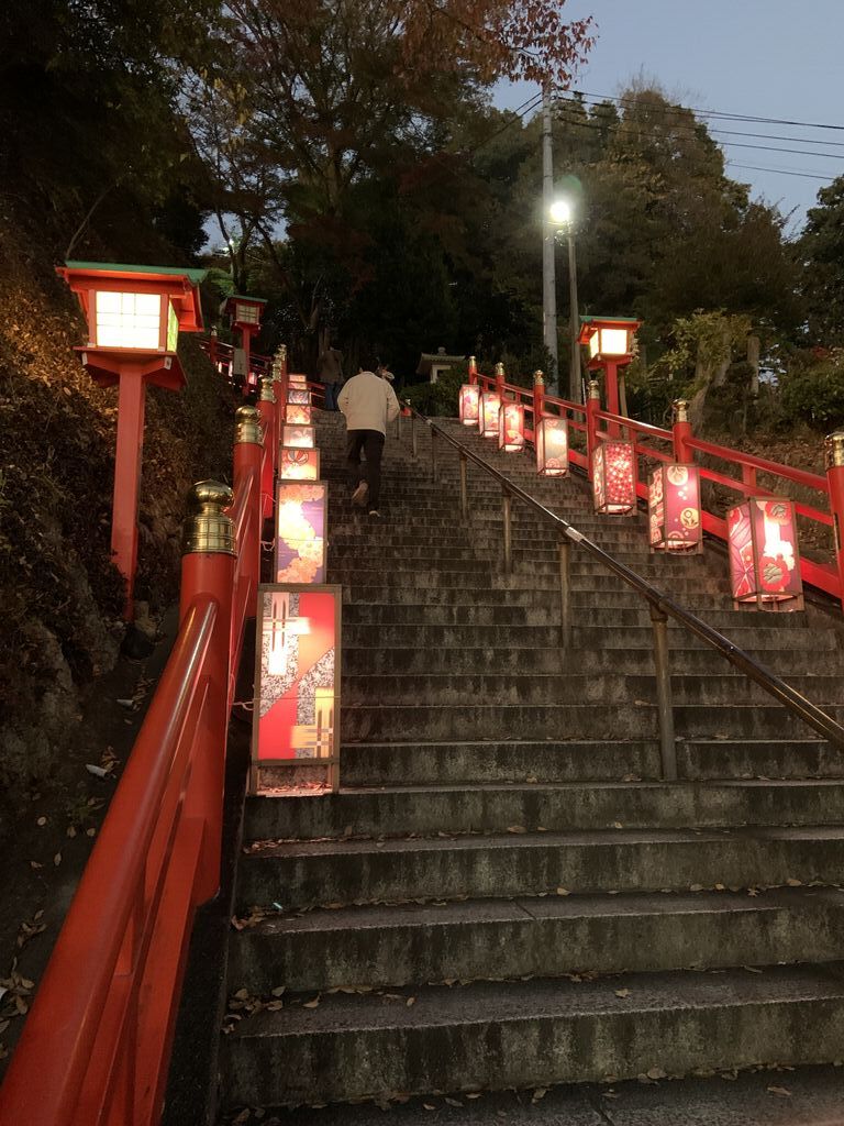 階段に行儀良く並んだ足利銘仙柄の行燈(o゜▽゜)o☆ 鑁阿寺にも、足利学校にも設置されていたけれど、織姫神社で撮影しようと思って来ましたヾ(≧▽≦*)o まぁこの階段が段数もあり、結構疲れます( ╯□╰ ) 案の定、翌日も、翌々日も、バリバリの筋肉痛Σ( ̄ロ ̄lll) しかし神社まで辿り着けると達成感がスゴイ(@ ̄□ ̄@;)!!! そして、暗闇に浮かび上がる神殿が艶やか(⋈◍>◡<◍)。✧♡ 参拝もさせていただき、心も整ったかな°˖✧◝(⁰▿⁰)◜✧˖° 満ちていくエネルギーをパワーに変えて、自分も凛として生きていきたいデス(⋈◍>◡<◍)。✧♡ (訪問:2025/11/13)