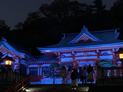 “一の鳥居“までJR足利駅から歩き、ここから更に200段余の石段を登りました。途中で膝はガクガク、息も絶え絶えになりながら、やっとの思いで上まで辿り着きました。すると、目の前には(初めて見る)ライトアップされた社殿が・・その幻想的な美しさに疲れが一気に吹き飛んでしまいました。そして後ろを振り返ると足利市内の夜景が・・もうこれ以上言葉では表現できません。“日本夜景遺産“に認定されている足利織姫神社には、次回も夜に参拝したいと思います。 (訪問:2025/11/15)