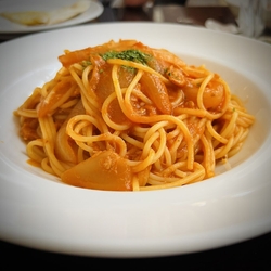 きょう23日は秋分の日。絶好のお出かけ日和なので、ドライブがてらお邪魔しました。 『大葉のマルゲリータ 』と『シラスのピッツァ』と『トンのロッソ』こちらのピッツァやパスタが、ランチセット(¥1,400-)でお得に頂けるのはホント嬉しいです。 パリパリ生地のローマ風ピザが美味しくて、『海の幸のピッツァ(¥1,705-) 』と『ジェノバ風海の幸のピッツァ(¥1,815-) 』も追加でオーダー。…娘家族と一緒に皆でわいわいシェアでき、とても楽しいランチタイムになりました♪ 夫は、ホットコーヒーのお替わりが嬉しいようでした。 (訪問:2025/09/23)