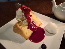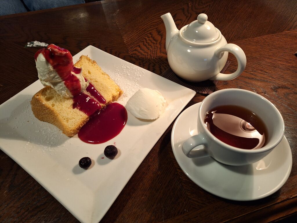 本を読みたく現在閉店が18時のこちらに、17時に滑り込み入店。やっばり大好きな組合せである『ケーキプレート(シフォンケーキ/マルコポーロ)1430円』をチョイス。今回はベリーソースと生クリームがいつもよりも盛りもりな印象。更に添えてあるアイスがレモンソルベで、とってもさわやかで絶品☆これだけで注文したいほど美味しかった~^^しっとりふんわりなシフォン生地は甘すぎず、添えられたベリーソースとも、クリームとも、その両方とも相性抜群で、本を忘れさせてしまう魅惑のスイーツ。併せたマルコポーロも香り良く渋みもないお気に入りのお茶♪ケーキプレートに癒され過ぎてうっかり閉店時間ギリギリに。居心地よすぎて危なかったです。今度はもちっと余裕もってお邪魔し、のんびり癒されたいです。 (訪問:2025/02/15)
