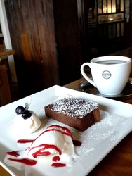 ご飯食べたいかも~と16時前にお邪魔しました。が、残念ながらご飯系は終了とのこと。それであれば読書と共にスイーツを!と『ケーキプレート1430円(ガトーショコラ/ダージリン)』をチョイス。しっとり濃厚なこちらのガトーショコラ、シフォンと悩むお気に入りの一品。そのままでも良し、生クリームを添えてもよし。読書を中断させる魅惑のケーキ☆添えてあるレモンソルベも真逆のお味で美味しく、ダージリンともとっても良い相性で、素敵な読書タイムに♪お会計の時、以前お渡ししたこちらの『ドリップコーヒー972円』が、とても美味しかったとおっしゃっていただいた方が今回人事異動となり、大変お世話になりましたのでこちらをお渡しすることに。お渡ししたところ、覚えてらしたようで大変喜んでくださいました^^入店前も後もこちらのお店の前で招き猫してるトラネコさんとお戯れさせてもらいました。入店前も入店中も、退転後も癒してくれる大好きなお店様です。 (訪問:2025/03/30)