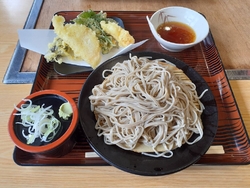 ろまんちっく村の中にあり、お買い物も楽しめます。天ぷらもり蕎麦は春菊・しいたけ・ナスでした。なかなか自分では選ばない野菜の天ぷらは素材の味が滲み出てて春菊さくさく、しいたけもおナスもふわふわ~。お蕎麦でさっぱりと美味しくいただきました。 (訪問:2024/05/26)