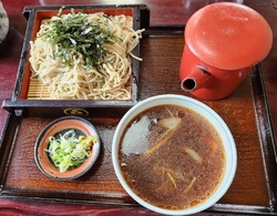今日は公民館でけんちん鍋祭りを開催して沢山のかたに来ていただきました。打ち上げ後に蕎麦を食べて帰ることに。注文は「もつ煮込み 700円×2」「いいだこの唐揚げ 750円×2」「イカそうめん 550円×2」「ゆば巻き 750円×2」「イカと野菜の天ぷら 750円×2」「カモざる 1,150円×3」「カモ南蛮 1,150円×2」「上鍋焼き 1,250円×3」「粋蕎 3,000円」定番のおつまみに蕎麦焼酎のそば湯割。最後は1番好きなカモざるでご馳走様でした。 (訪問:2025/12/07)